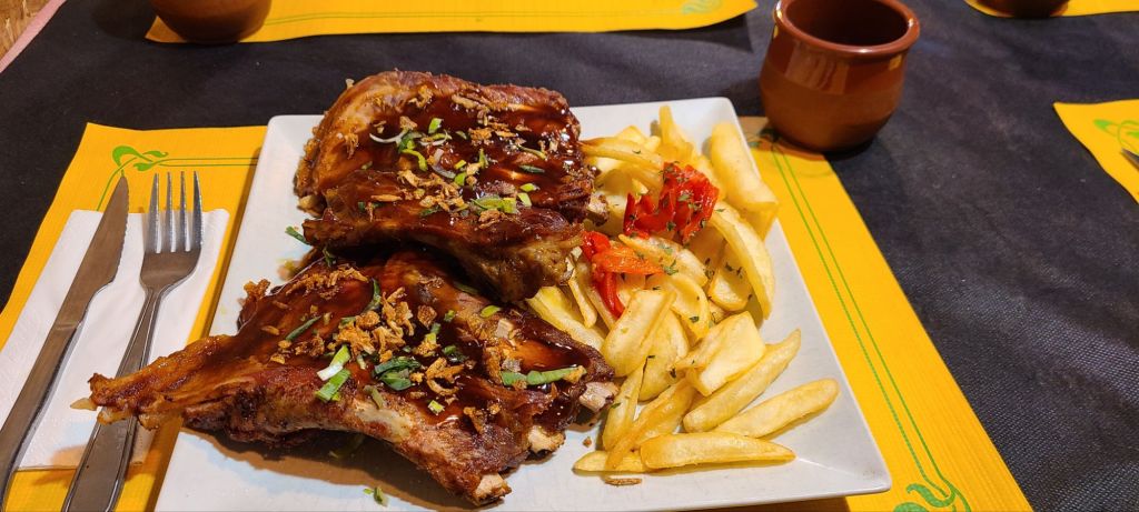 In that place, I finally ran into Christian friend Evan from Taiwan. I had met him two weeks ago en route to Pamplona. I’d been wondering how he’s getting along. I sense that we are both more turned inward. Then — BAM! — my Aussie pilgrim friends, Jason and Jenni, walked up. We make dinner plans to eat together at a pilgrim-run restaurant (El Chiringuito del Camino) specializing in authentic regional Spanish dishes. Dinner was amazing. I had probably one of the best roasted pork ribs dishes ever. It’s not Texas style or dry rub, but slightly sweet, tangy, perfectly roasted, and lightly sauced.