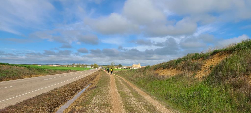 I enjoyed relatively flat trails past Castrojeriz for about a mile, sharing the trail with clumps of pilgrims (I almost always ask where they are from). I meet two pilgrims from North Carolina– we’re practically neighbors out here on the Meseta.